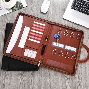 Custom PU Leather Zippered Key Case Organizer Waterproof Key Binder Tags Portable Key Storage Book