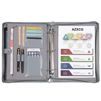 Kağıt Junkie Binder organizatör-10X12.5 In, gri Polyester ster-özgeçmiş portföy klasörü-fermuar bağlayıcı kartvizit cepler