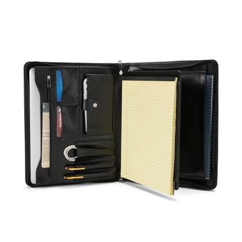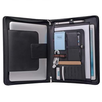 Fermuar ile Vegan deri portföy, A4 dizüstü Padfolio 13 dizüstü bilgisayar kılıfı kalemlik 8.5x11 not defteri organizatör profesyonel